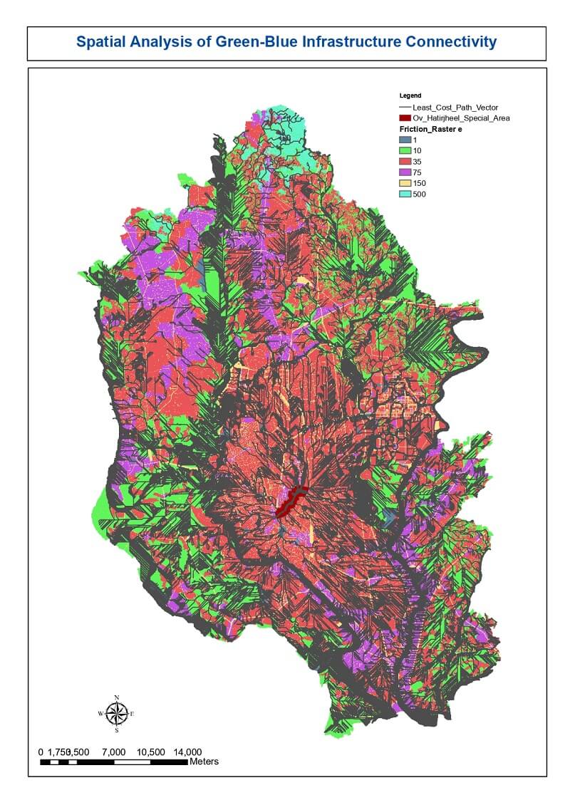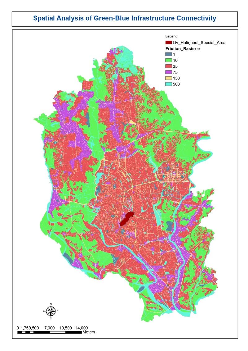 Quantifying the urban ecological resistance between the Hatirjheel Special Area and Dhaka's regional water network.